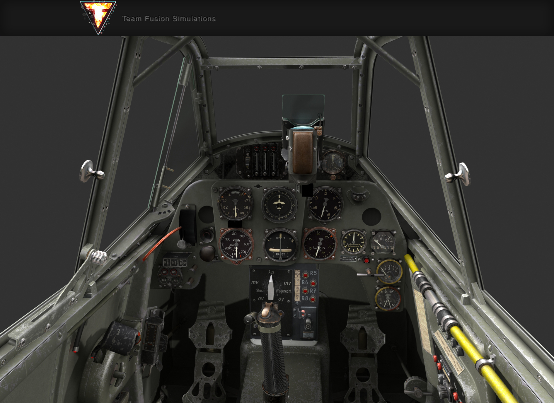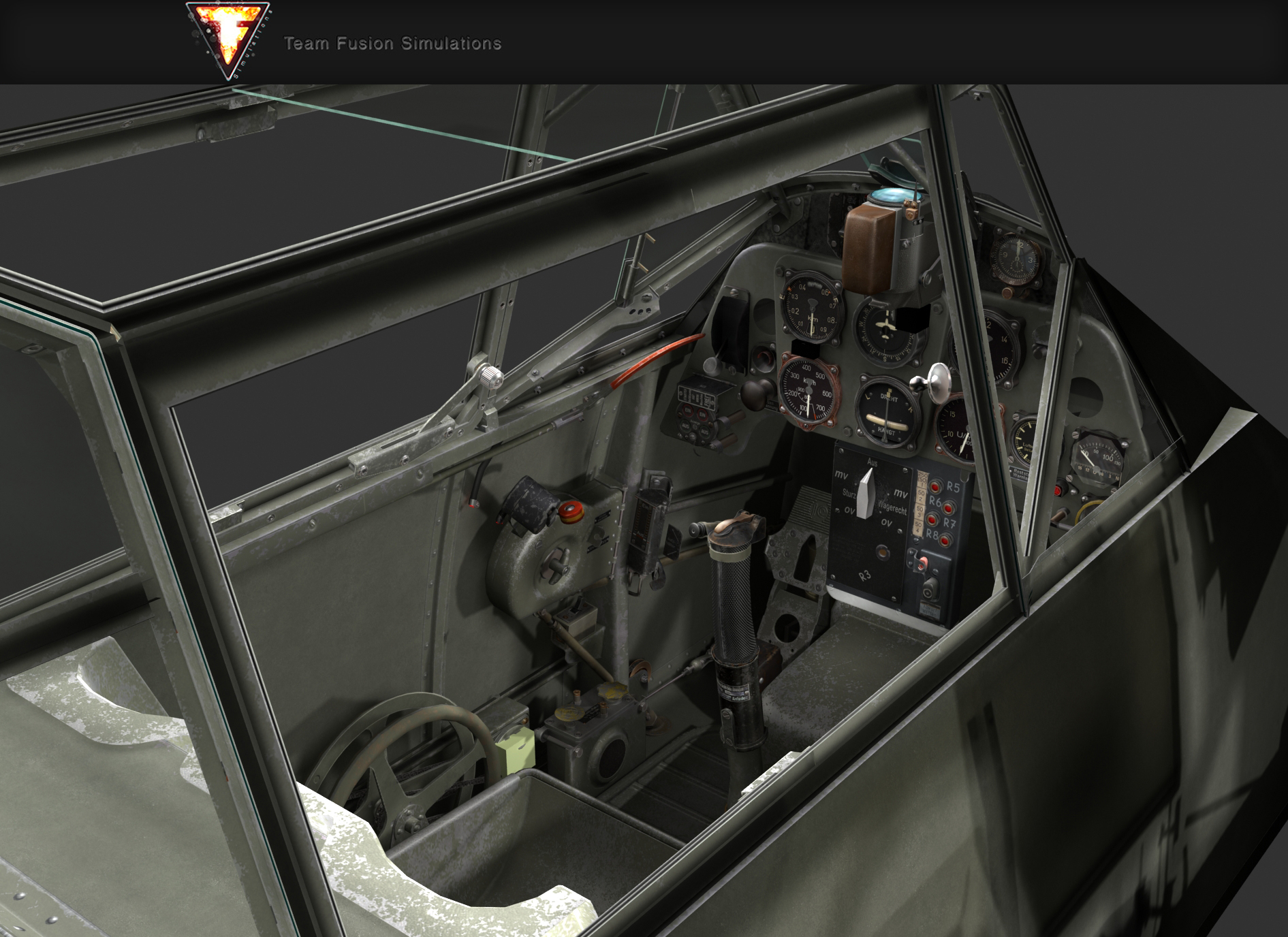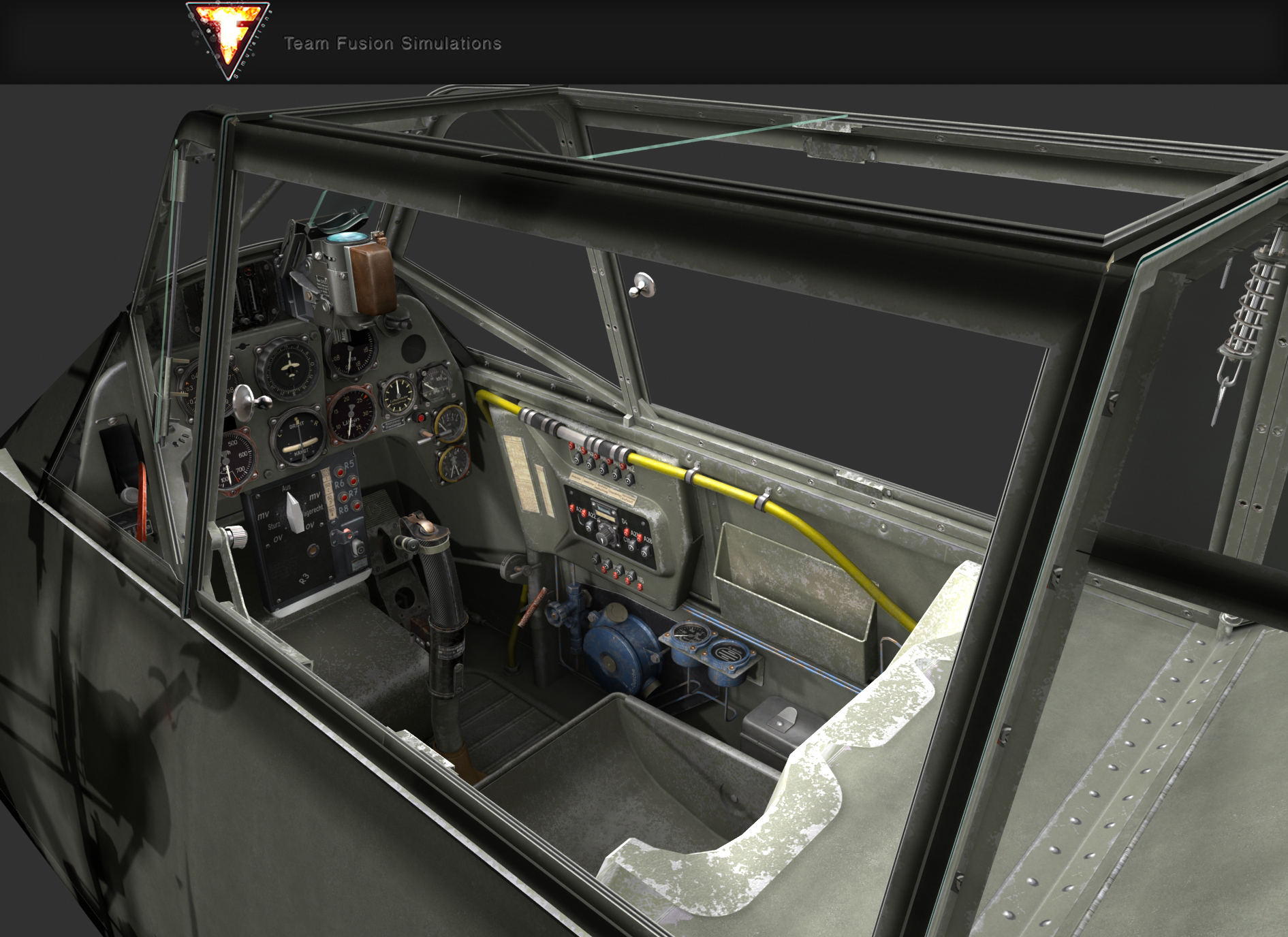 Szóval a mostani elképzelés az, hogy rendesen lesznek rajta a használatnak nyomai, kosz, por, homok meg ilyenek, de festékkopást csak oda rakok, ahol az tényleg indokolt lenne. Műszereknél is ezért finomítottuk az elsárgult lumineszcens anyagokat, mert az 40 év alatt sárgul be, nem pár hónap alatt. Mostani kabinfotókon persze úgy néz ki, csak sokan elfelejtik, hogy közben eltelt 75+ év...